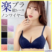 ★ネコポス \新色登場!!/≪楽ブラ★総レース×ノンワイヤー≫ノンワイヤー ブラ ノンワイヤーブラ ワイヤレスブラ 総レースブラ 美胸 ブラジャー ワイヤレス ブラ レディース モールドカップブラ モールドカップ 下着 盛れる 130