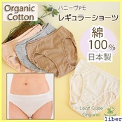 オーガニックコットン ショーツ 下着 レギュラーショーツ 綿100% Leaf Cube Organic ハニーヴァモ オーガニック コットン 綿 レディース ショーツ パンツ 日本製 ピンク グレー ブラウン オフホワイト 271