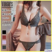 VIRGOS 脇高でしっかり補正&谷間!やわらかノンワイヤーリボンブラ 美胸 美背 脇高 レース フルレース 総レース 谷間 盛れる ノンワイヤー 育乳 バストアップ 補正 ブラジャー ショーツ ブラショーツ ランジェリー インナー レディース セクシー 391