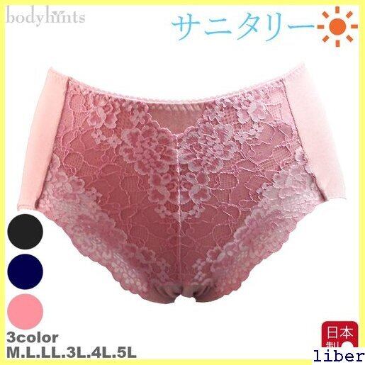 サニタリーショーツ 生理用ショーツ 昼用 日本製 おなかヒップを包みこむ Vレース 綿ショーツ M L LL 生理用パンツ sanitary shorts 835