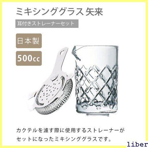ミキシンググラス 矢来 500cc &耳付きストレーナーセット 業務用 日本製 自宅でカクテル作り バー用品 170
