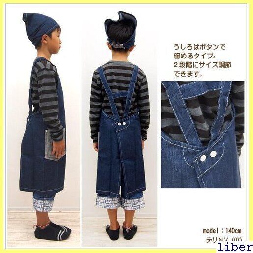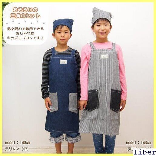 即出荷 エプロン キッズ 三角巾付き キッズエプロン 子供用 三角巾セット こども 男の子 女の子 120cm 130cm 140cm お手伝い 料理 保育園 幼稚園 小学校 給食 調理実習 入園 入学 通園グッズ デニム ストライプ かわいい キッズエプロンL ネコポス便 258