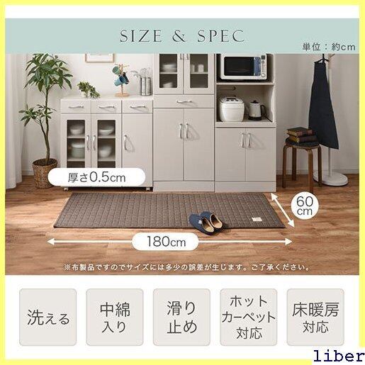 キルト キッチンマット 180cm 洗える キルティング 滑り止め 付き 床暖房対応 ワイド ロング 60×180 cm キッチン マット 台所 台所マット キルトマット おしゃれ ブラウン/アイボリー/グレー/ネイビー KET140096 325