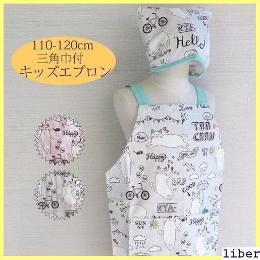 ・宅配便可TAACHAN 三角巾付!ネコプリントキッズエプロン/ターチャンデイズ
