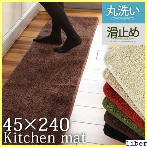 キッチンマット 洗える 滑り止め付き 240cm カーペット ラグ ワイド 長方形 carpet キッチン用品 じゅうたん 絨毯 キッチンラグ 台所マット 丸洗い ロング 長い すべり止め加工 ブラック黒 床暖対応 ホットカーペット対応 45×240 401