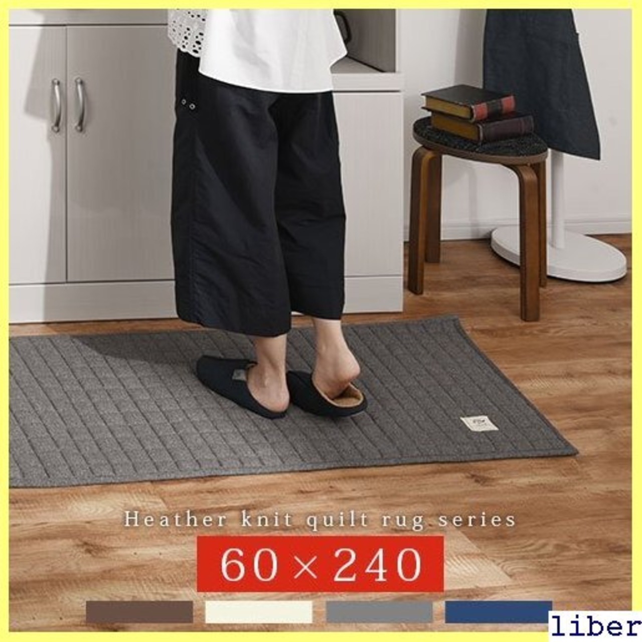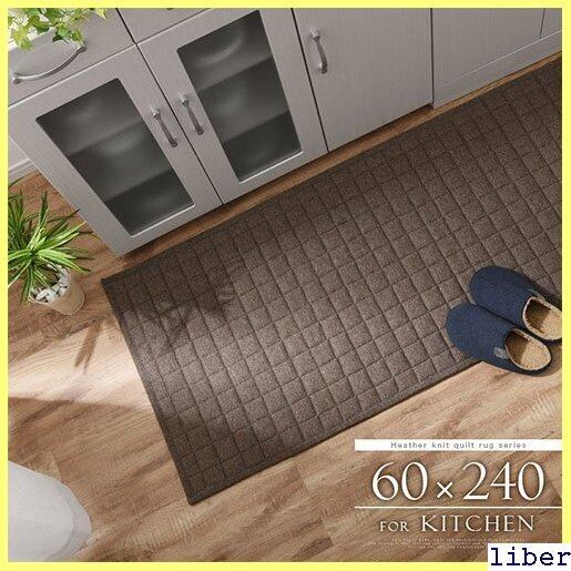 キルト キッチンマット 240 洗える すべり止め付き 床暖対応 60×240cm ブラウン/アイボリー/グレー/ネイビー KET140097 546