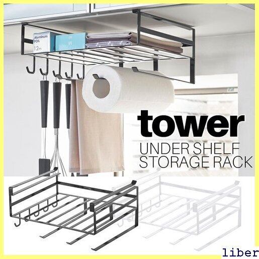 戸棚下多機能ラック タワー 山崎実業 tower 選べる2色 ホワイト ブラック 02845 02846 / キッチンペーパーホルダー フック タオルハンガー フキンハンガー 収納ラック 戸棚下 戸棚下収納 おしゃれ シンプル スタイリッシュ YAMAZAKI ヤマジツ ・対応 669
